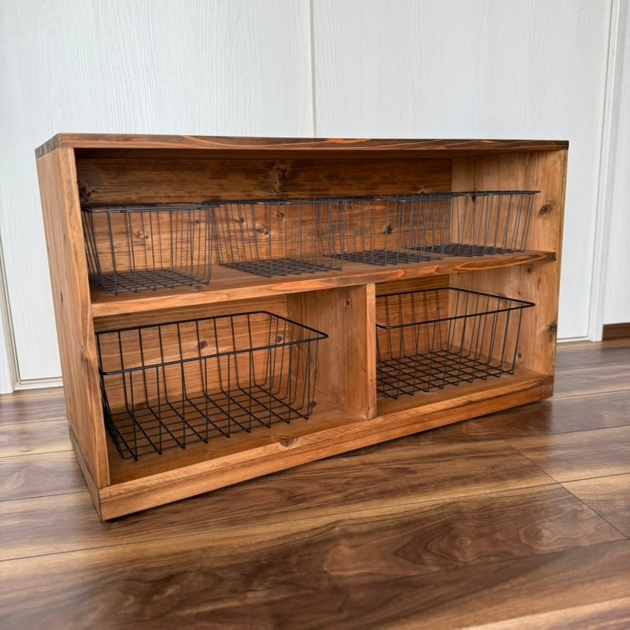 #キャスター付き収納 #ワイヤーバスケット #ハンドメイド家具 #ナチュラルインテリア #木製収納ラック #おしゃれ収納 #収納棚 #無垢材家具 #カフェ風インテリア #工房金魚