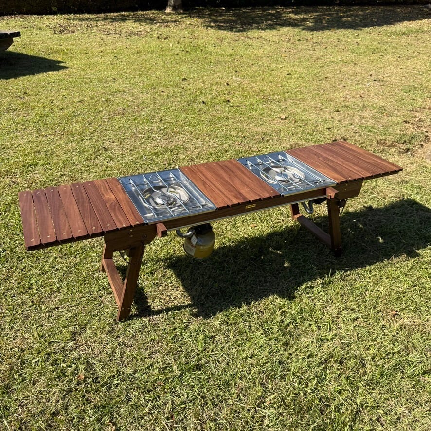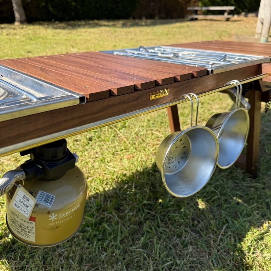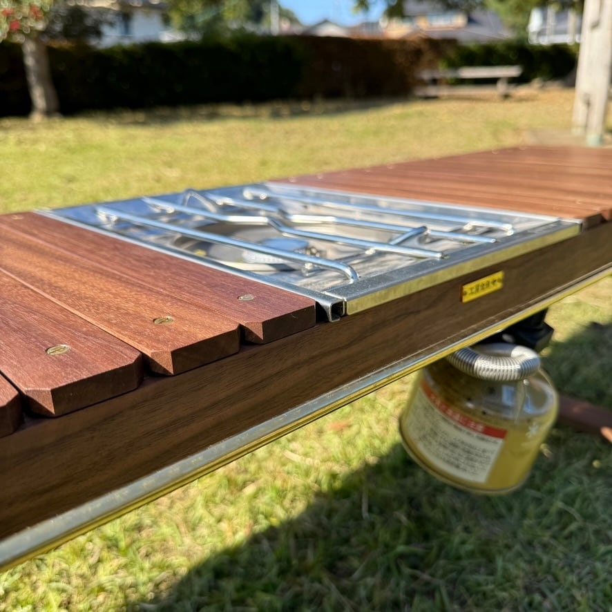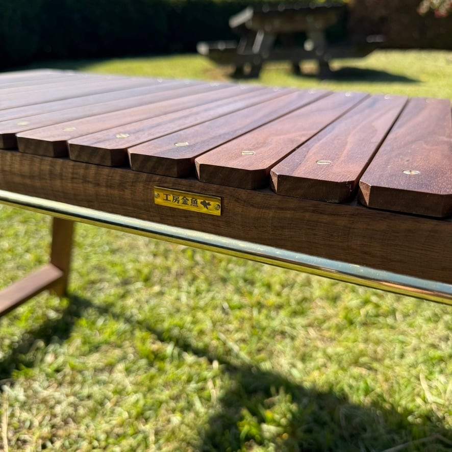 IGT対応 ウォルナット テーブル|折りたたみ式・真鍮パーツ・フラットバーナー対応・キャンプ・アウトドア家具・工房金魚