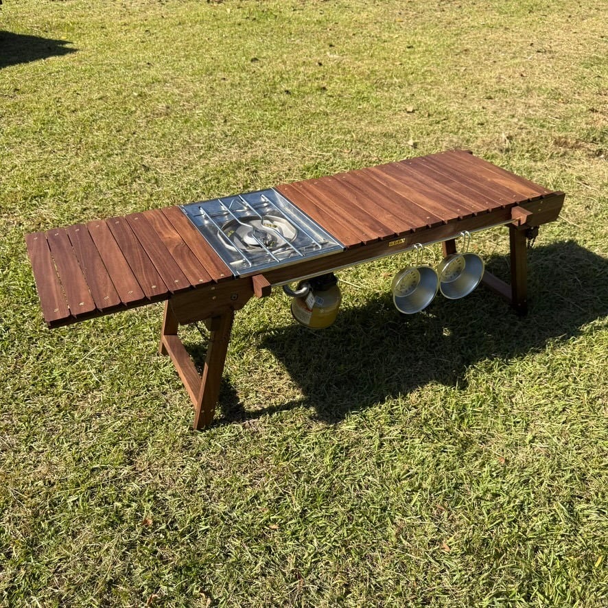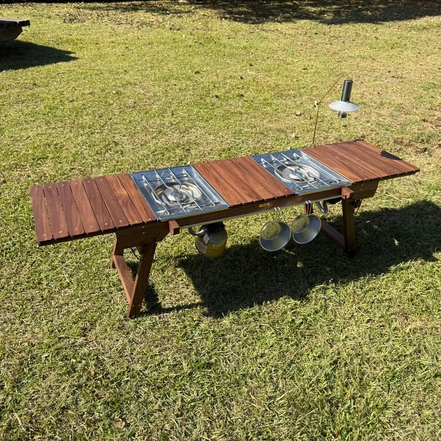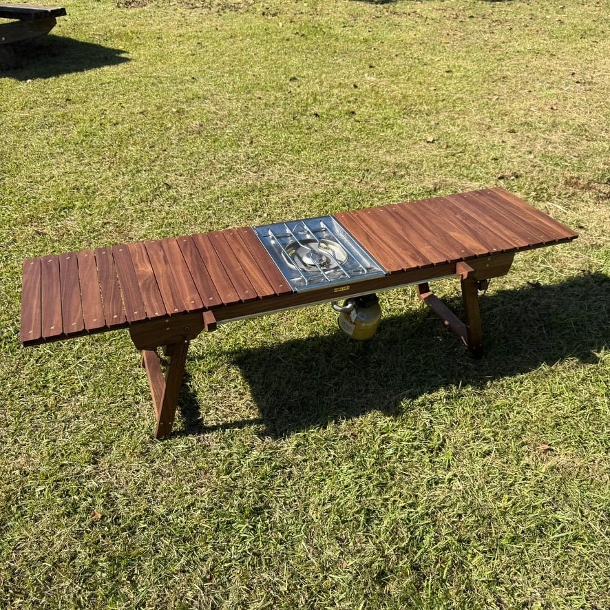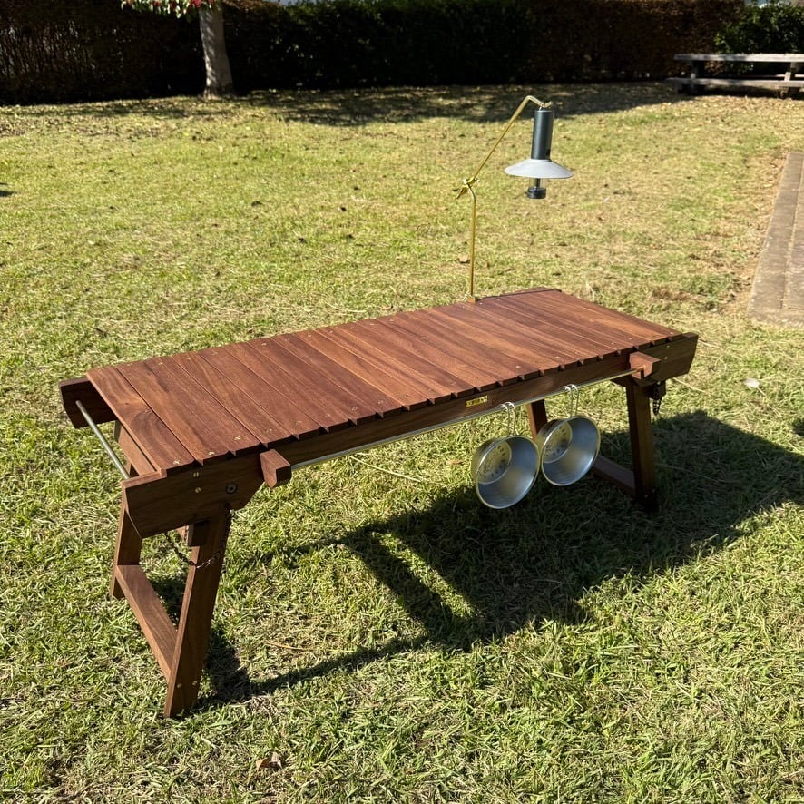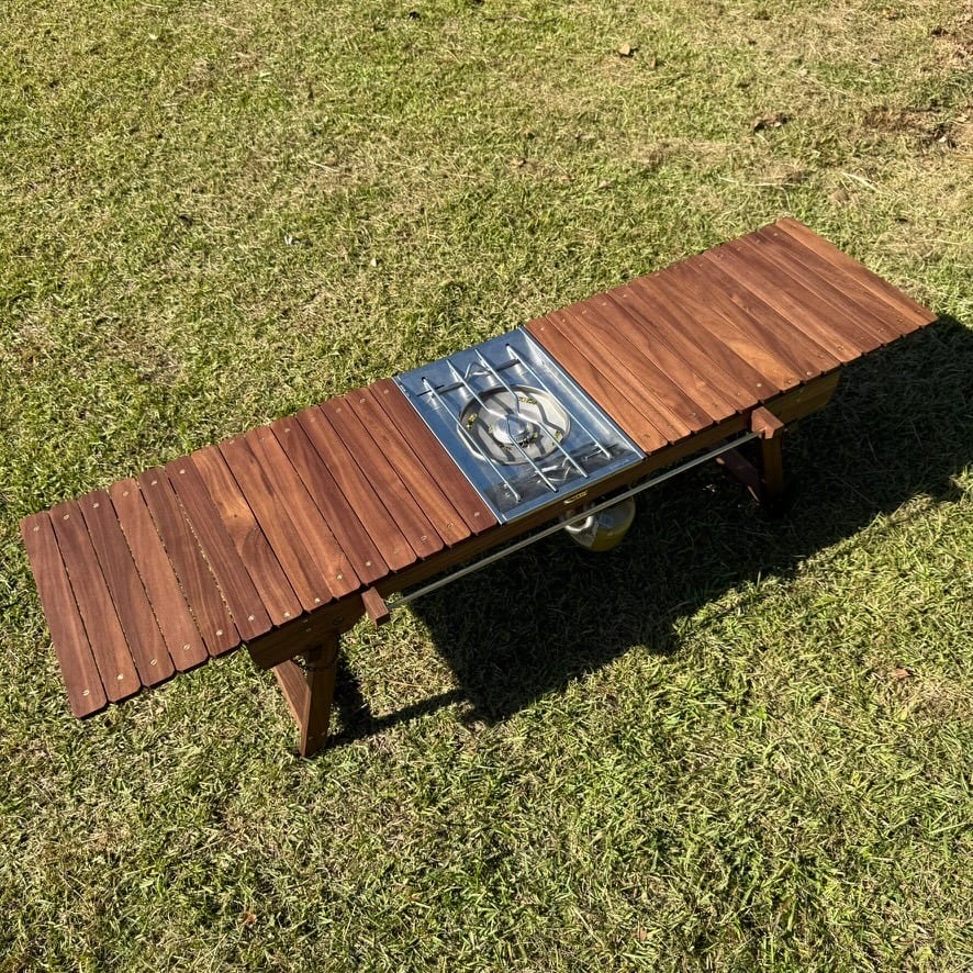 IGT対応 ウォルナット テーブル|折りたたみ式・真鍮パーツ・フラットバーナー対応・キャンプ・アウトドア家具・工房金魚