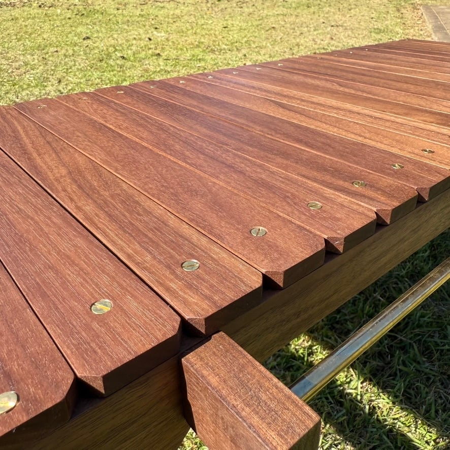 深いウォルナットの色味と真鍮パーツの輝き。
